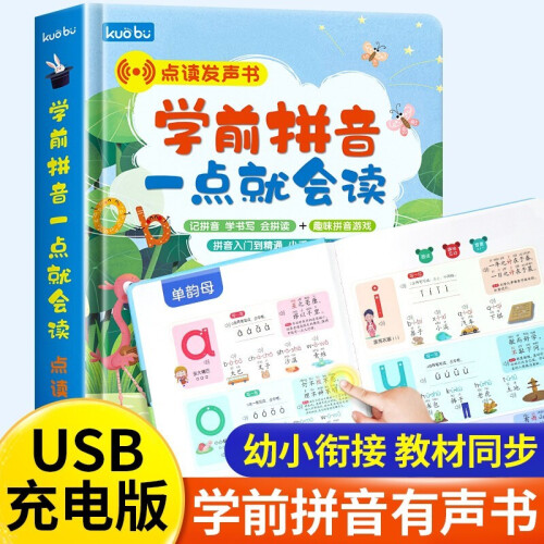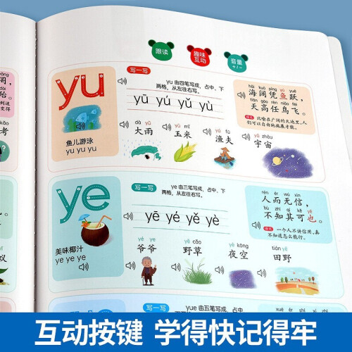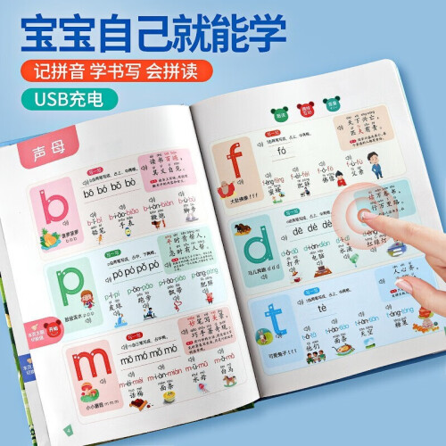 幼小衔接,同步教材。拆解式学习,图文并茂更易懂,从拼音种类声调范读书写拓展组词等多个方面入手,由浅深入帮助孩子学习和应用拼音,分阶段学习,知识重难点一目了然听说读写,看学记练,多维拓展,多感官互动阅读6种功能按键助力宝宝快速学习拼音。