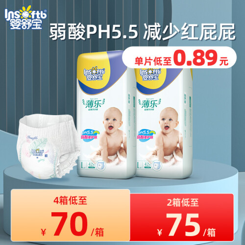 Insoftb婴舒宝是婴舒宝(中国)有限公司旗下婴幼儿纸尿裤品牌,公司成立于2010年,总部位于香港,主要生产婴儿纸尿裤、尿片,成人纸尿裤、尿片,湿纸巾,卫生巾,卫生护垫,生活用纸。这款薄乐系列拉拉裤薄至0.25cm,轻薄透气不闷热,弱酸性表层呵护宝贝娇嫩肌肤,不易出现红屁屁等不适现象,含有海量吸水高分子,吸收量达500ml,保持屁屁持久干爽,防漏护围增加5cm,有效阻隔尿液,柔软大腰围贴合身体,宝宝怎么动也不怕漏。