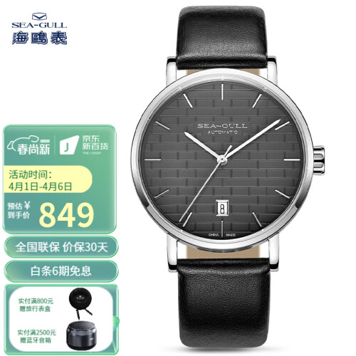 SEA-GULL 海鸥 国民系列 男士自动机械表 819.42.6027,此款ST2130机芯,振频28800,自动上链,表底透底,功能6点日历,表壳精钢,弧形表圈线条流畅,螺纹表冠,简洁美观不失优雅气息。表镜材质硬度高,耐磨性好是品味腕表,重要标识历久弥新经典而不乏时尚美感,清晰分钟指示,准确可靠,让你正确把握每分每秒。