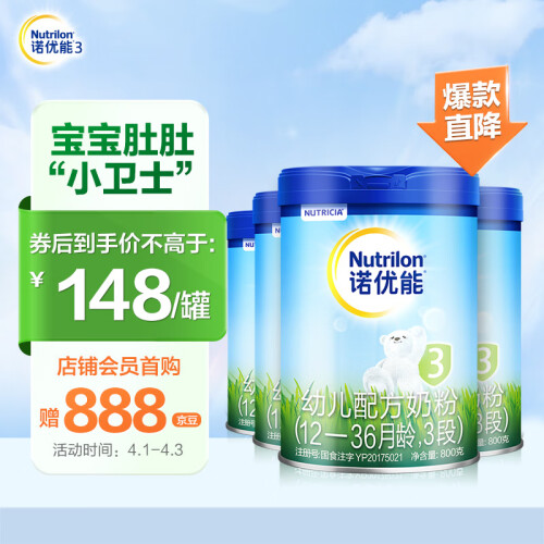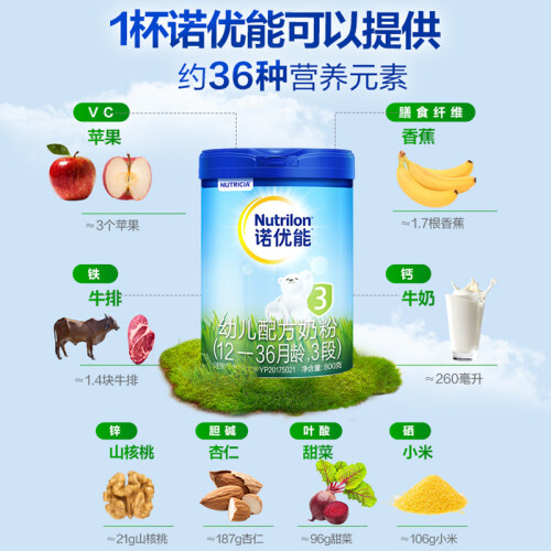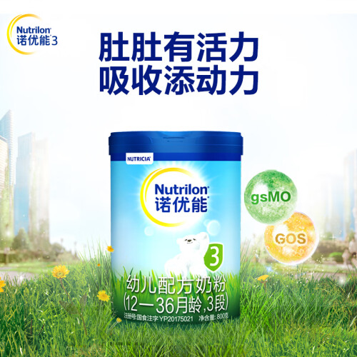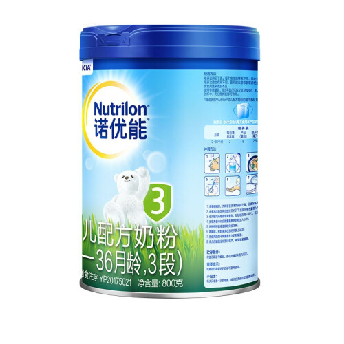 NUTRILON诺优能是已有100多年历史的健康制奶品牌,荷兰品牌。一直致力于婴幼儿营养产品的发展和研究。这款3段奶粉含独特的益生元能促进肠道益生菌生长。多种天然维生素有助增强抵抗力,使婴儿健康成长。成份内没有添加蔗糖,口味纯正,适合1岁以上的宝宝。