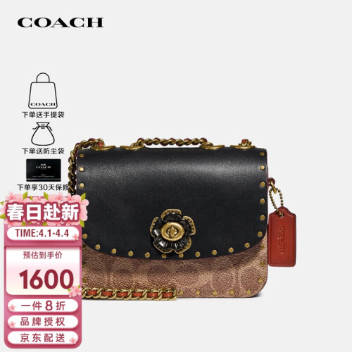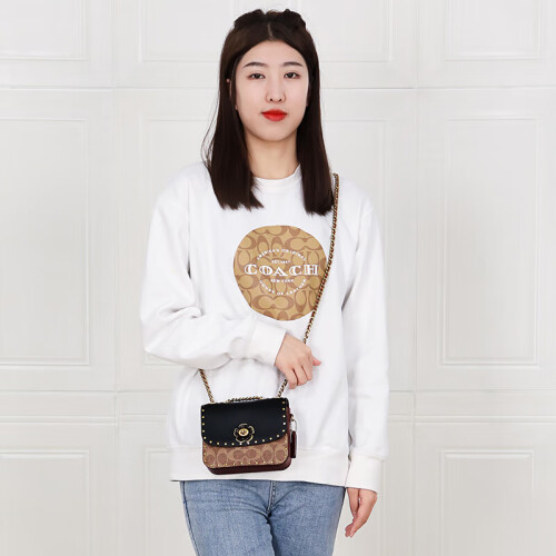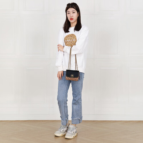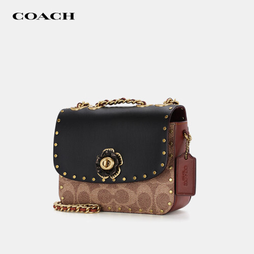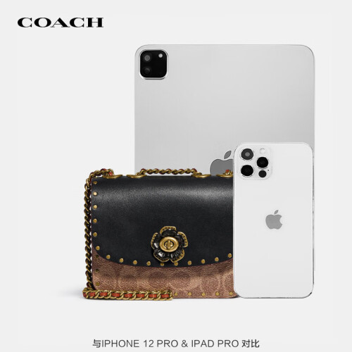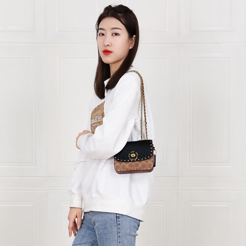 此款 COACH 2021春夏款 MADISON系列山茶花单肩包 C2462 MWQV8,黑色炭灰配色,山茶花经典标志,优雅百搭,尺寸为15.5cm*12.5cm*5cm