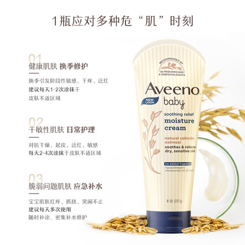 这款燕麦婴儿保湿润肤霜,富含天然胶状燕麦,舒缓宝宝娇嫩肌肤,不油腻,不会阻塞毛孔,保湿滋润长达24小时。不含香料,更适合敏感肌肤和新生儿。规格227g。不少聚友反馈在用,使用感不错,不过含有矿物油有过敏的可能性。