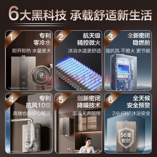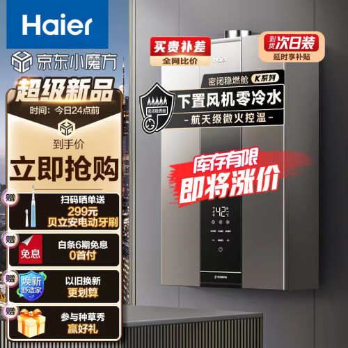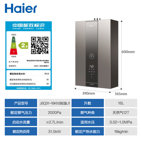 Haier 海尔 JSQ31-16KN3致逸U1 燃气热水器 16升 天然气 ,微火精控零冷水,精准控温,夏季水不烫,冬季大水量,拥有三管专利零冷水技术,可以做到即开即热,洗澡前无需先放水,打开龙头就是热水,加置独立回水管,水流量大,升级进口水泵,搭配智能双增压模式,有效解决高层沐浴水压低,及大户型需要多台热水器的烦恼。密闭稳燃舱专利,强抗风,不熄火,高楼层也能安心浴。