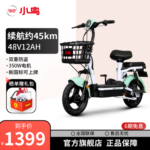 小鸟 TDT599Z 新国标电动自行车,350W防水电机,35KM续航里程,时尚透镜大灯,高亮聚光,低耗能,穿透力强、不刺眼,时刻保障您的安全。