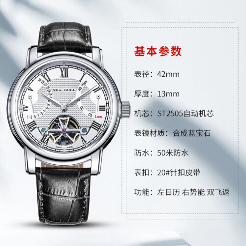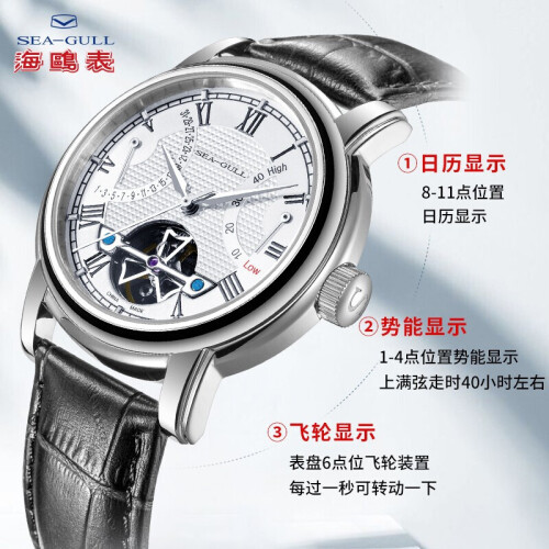 “海鸥”经典的飞轮系列代表作,煅烧蓝指针随着不同角度观看,呈现不同颜色,其乐无穷,多功能-日期,势能双飞返显示,让您不会忘记每一个重要的时刻,蓝宝石镜片,不易刮花,磨损,21600高摆频,精准稳定,非一般的性价比