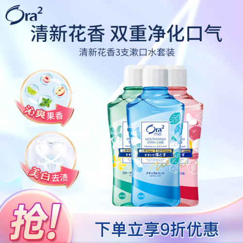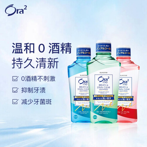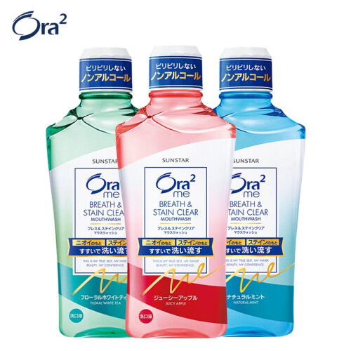 Ora2皓乐齿是日本SUNSTAR公司旗下口腔护理品牌,这款净澈气息漱口水共有清爽薄荷、爽口清柠、甜润苹果、热带芒果、鲜桃薄荷五种口味,可以双重清洗形成牙垢和口臭的成分。网友普遍反映口感好,不刺激,漱口效果也不错。真正的漱口杀菌效果在清爽的口味下有些被隐藏,但如果漱久一点,还是可以清楚的感觉到一些“杀杀”的感觉。