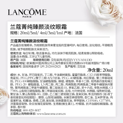 兰蔻(LANCOME)菁纯眼霜 臻颜焕亮眼霜20ml 1080元京东 推荐人: 慧君 发布时间:2020-11-22 10:59:15