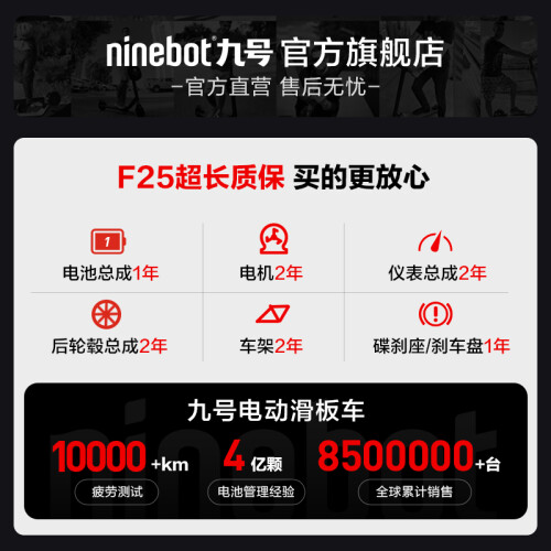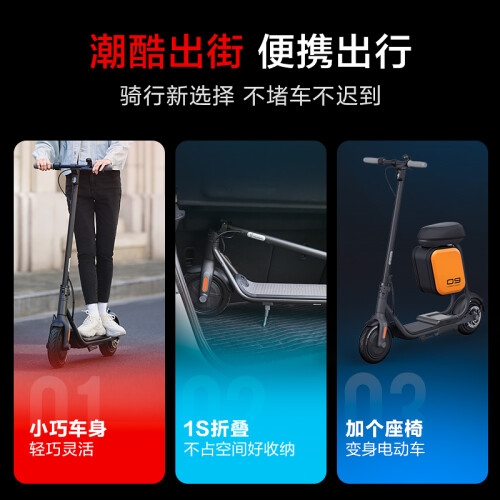 10英寸轮胎,舒适平稳易通过。电机寿命升级,提至3000小时。舒适平稳易通过,胎面破水防滑纹潮湿,路面不打滑。高韧性车架,结实抗造承重强,双轮制动。电子刹+碟刹剂,0.1s响应刹车快而稳,高循环锂电芯,5年后性能不低新车的70%。加厚全包围式踏板垫,减轻震动双脚不麻,弹性硅胶,舒适有弹性;凸点防滑设计,站立更安稳。