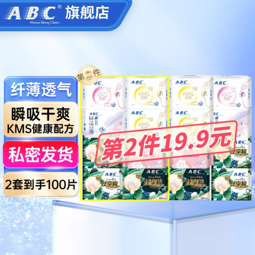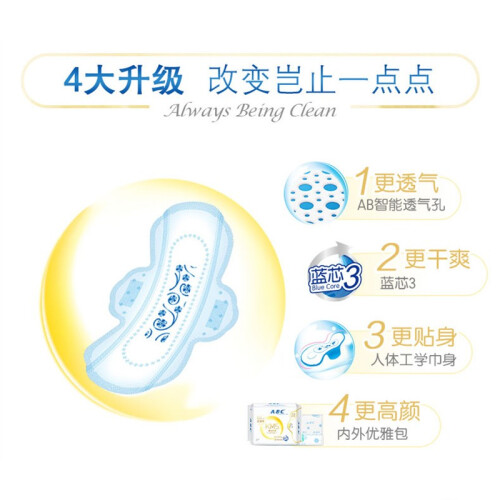 ABC是国内较为知名的个人护理品牌,专注于个人护理用品的研发、生产及销售,品牌下涵盖了卫生巾、卫生护垫等产品。独有的KMS健康配方,专为幼嫩肌肤所涉及,能有效抑菌、止痒、舒缓经期不适。