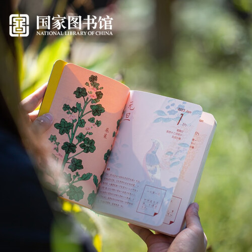 国家图书馆 2023年本草养年日历选用可撕胶装形式装帧,也可翻页使用,保存完整日历。封面采用烫银工艺,设计清新典雅,内页采用米色护眼环保纸,清晰还原古画之美。《本草养年》养生日历精选原书彩绘,并配以详实考究的解释,呈现本草之美。日历以八个全年最重要的节气划分章节。节气标题样式融合古典图样与现代设计,配有专属节气国色及大师刻印,显韵致迁延。通过“物候说”“本草说”“养年说”等形式,《本草养年》养生日历将《食物本草》中的食物妙用与节气相结合。