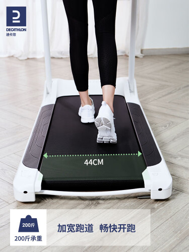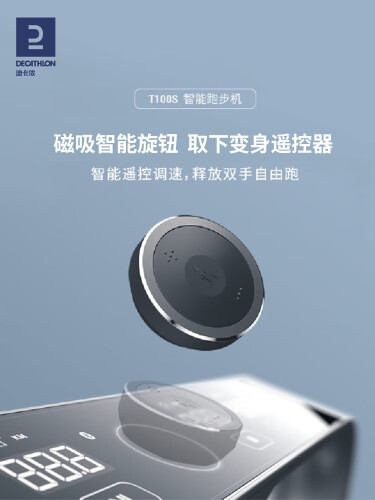 DECATHLON 迪卡侬 T100S 家用智能跑步机,快速折叠系统,仅2秒即可折叠/打开,节省空间更轻松免安装设计,开箱即可使用。折叠后竖直存放仅需0.25平米,4向移动滚轮,方便移动,轻松嵌入房间角落。快速折叠系统,仅2秒即可折叠/打开,节省空间更轻免安装设计,开箱即可使用。仿生缓震科技,如猫爪肉垫般软弹快速吸收冲击力的同时,提供柔和的回弹,呵护膝关节。APP将会记录你每次运动的数据,包括时间,卡路里,平均配速等,并根据你的目标给到科学的建议,陪伴你的蜕变旅程。