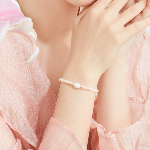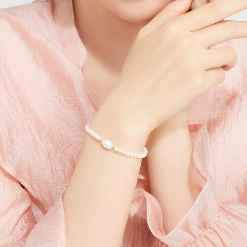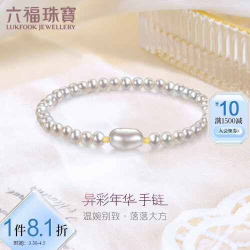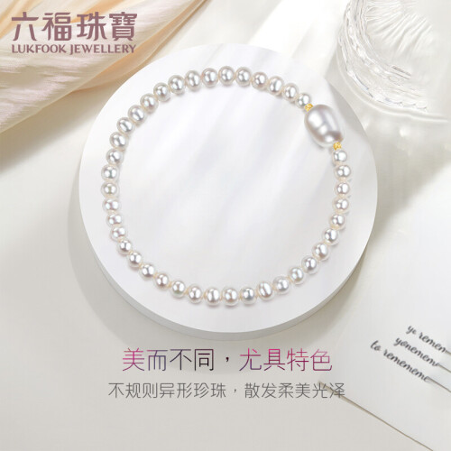 LUKFOOK JEWELLERY 六福珠宝 18K金异形珍珠手链 F87DSKB0012Y,不规则异形珍珠,温柔典雅而又自由不羁,不经意间Slay全场,多切面K金闪珠点缀,闪耀度加倍亮眼,双色辉映,更添美好。