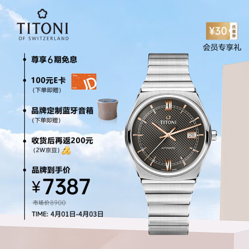 TITONI 梅花 动力系列 男士自动上链腕表 83751-S-626R,动力系列以设计纤巧及工艺精致见称。透过底盖防反射蓝宝石水晶玻璃可以欣赏到机芯运作,外形优雅低调,同时着重内涵,真正的内外兼备,彰显佩戴者积极自信的特质。