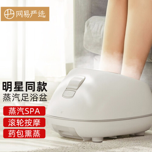 网易严选蒸汽足浴盆,采用蒸汽熏蒸,避免使用热水泡脚时间长会让皮肤发白。需要160毫升水,可使用20分钟以上,1分钟释放蒸汽。内置机构避免沸水外溅。使用完成后,脚不会沾水。支持10分钟,15分钟,20分钟三档定时。内部具有防鹅卵石盆底,可起到一定按摩作用,并且可将盆底卸除,单独清洗。具有排水键,一键排水。带有独立的药盒,可放入熏药包。额定功率340w。低档温度30~42℃,高档温度35~50℃。