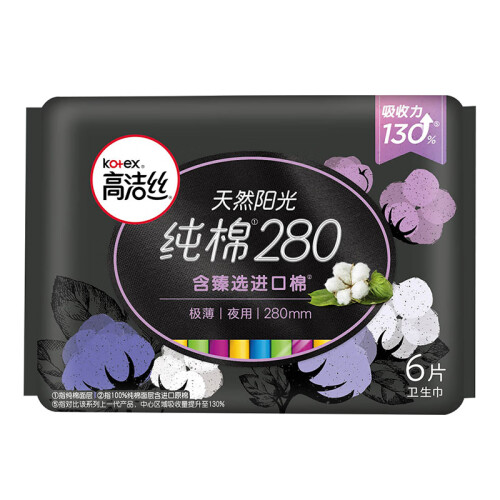 kotex 高洁丝是Kimberly-Clark金佰利集团旗下的女性卫生用品品牌,产品包括纯棉卫生巾、超薄卫生巾、日用卫生巾、夜用卫生巾、迷你卫生巾、夜安裤、护垫等女性卫生巾产品。此款臻选澳洲纯棉卫生巾,澳洲进口纯棉,超薄巾身,柔软亲肤不刺激。