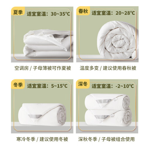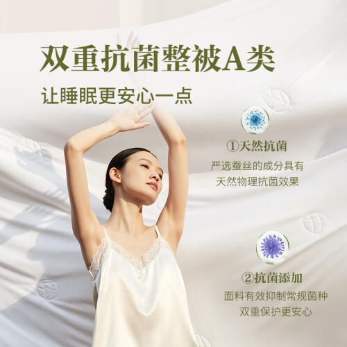 拒绝农药、严格放养、人工选茧;只选用中间层品质原料,蓬松性和饱满度更胜一筹,手感柔软有弹性。蚕丝是一种很柔软和纤细的纤维,盖在身上不会让你感觉到“空” 蚕丝被触感细腻柔滑,自然贴合身体曲线,自然舒适。A类亲肤面料,超柔亲肤面料,采用碳素磨毛工艺,细腻亲肤轻盈贴合身体,整夜舒适安睡。