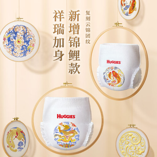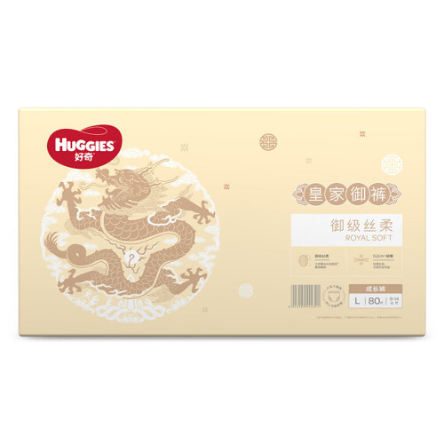 HUGGIES好奇纸尿裤诞生于1978年,是有140年历史的美国金佰利旗下的纸尿裤品牌,专为确保宝宝的舒适穿着和自在活动而设计,旗下有金装、铂金装、心钻装等系列纸尿裤。这款皇家御裤系列拉拉裤选用天然蚕丝织造,细至宝宝头发的约1/2,摸起来像丝绸一样顺滑,御级丝柔呵护宝宝的娇嫩肌肤,面层分布着百万个透气微孔,及时排出潮湿,屁屁干爽不闷热,莱卡弹力腰围收放自如,不会勒肚肚,宝宝怎么动都舒服,立体式剪裁温柔包裹宝宝腰腹和大腿,不易发生漏尿问题。