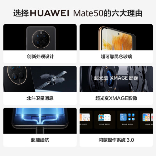 华为 Mate 50 Pro 整机为3D曲面设计,巴黎饰钉设计,更显高端优雅,有冰霜银、耀金黑、流光紫三款玻璃版本以及正面采用昆仑玻璃面板的昆仑破晓,昆仑霞光两款素皮版本,昆仑玻璃面板,整机耐摔能力得到更好的提升,获得瑞士SGS五星抗跌耐摔权威认证,整机重205g。