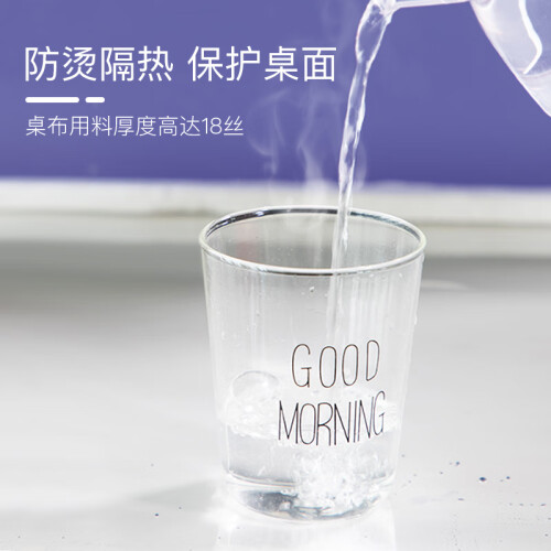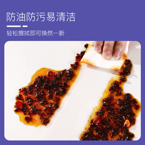 可防止水、油等液体渗透桌布,果汁、可乐不慎倾撒,及时擦拭,即可恢复洁净,数次水洗,仍能保持洁净状态。