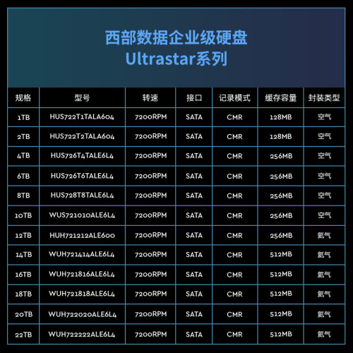 Western Digital 西部数据 8TB HC510拥有大数据存储中心,氦气密封,250万小时/MTBF,五年质保。