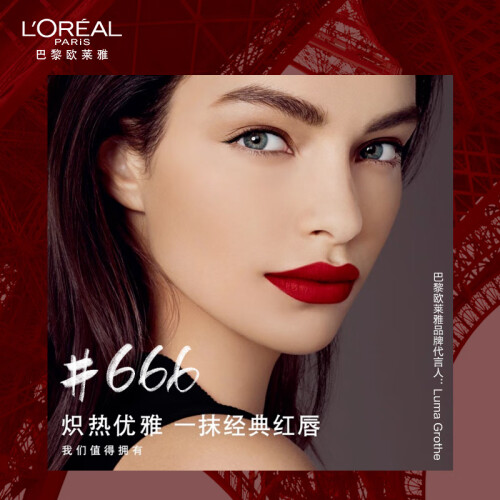 L'OREAL PARIS(欧莱雅)来自法国的彩妆护肤品牌,创立于1907年,是欧莱雅集团旗下大众化妆品牌之一,主要生产染发护发、彩妆及护肤产品,其彩妆品尤其是口红,一直是在性价比和品质之间有着很好的平衡,性价比高。这款纷泽丰润雾感唇膏,选择了丝绒质地,匀光显色凝胶科技配以丝绒颗粒,唇妆有着如柔雾般的高级色泽,易上色,含有荷荷巴油,滋润保湿不拔干,顺滑好涂抹,妆效持久。外观选用了磨砂的仿皮革纹路的壳子,黑金配色,质感非凡。