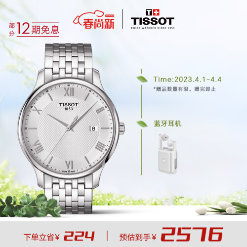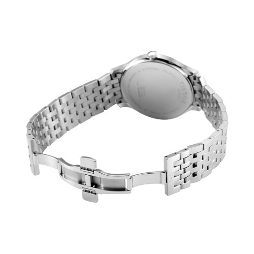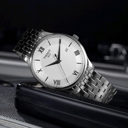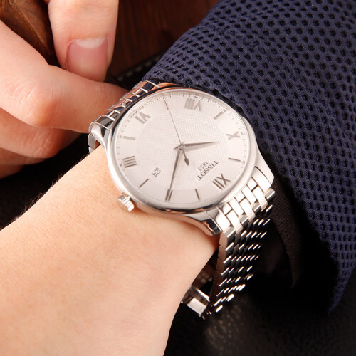 TISSOT 天梭 始创于1853年,于1983年加入世界最大手表制造商及分销商Swatch Group。作为中价位瑞士表的领导品牌之一,其正统的出身、简约的设计和相对亲民的价格使其在国内树立了平民奢品、高性价比的品牌形象。这款俊雅系列男士石英腕表,设计灵感源于在都市中对简约生活的向往,搭载瑞产石英机芯,走时稳定。表盘采用纤薄设计,搭配纤细太妃针及罗马数字时标,3点钟位置有日期窗,方便读时。周身采用316L钢打造,表壳直径约42毫米,厚约7.47毫米。蓝宝石玻璃表镜耐刮擦。30米防水,支持日常生活使用。