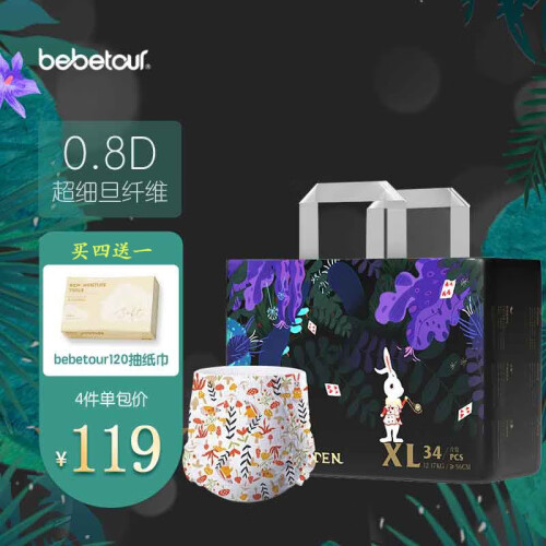 BebeTour 爱丽丝系列 婴儿拉拉裤 L36片,0.8D超细旦纤维,丝滑细腻如新生裸肌,让宝宝在仙境展开自由冒险。源于自然的阳光棉,与3D立体面层紧密相融,四季舒适。