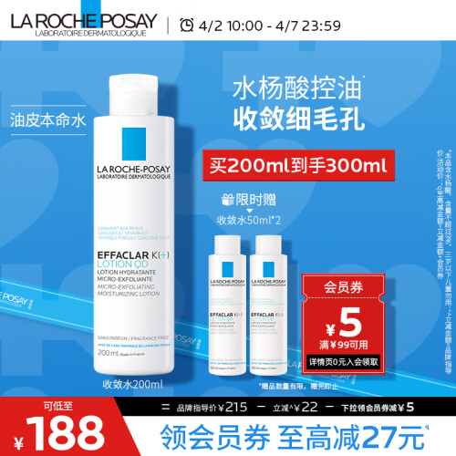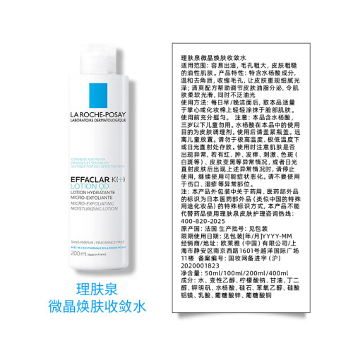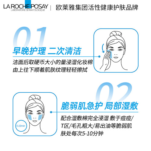 这款LA ROCHE-POSAY 理肤泉 清痘净肤系列清痘净肤特润爽肤水,是理肤泉品牌第一款专为缺水性皮肤设计的温和柔润保湿爽肤水,舒缓紧绷和不适感,为肌肤提供保湿;蕴含了葡萄糖锌,可以调节多余油脂;富含温泉水和保湿成分,给予皮肤充足水分,气味清新怡人,用后肌肤清爽舒适;还添加了甘油和水杨酸的成分,剥脱角质,温和补水。适合油性和混合性的肤质。