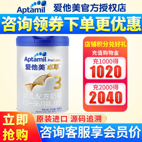 爱他美卓萃系列婴儿配方奶粉 ,该系列下涵盖了从1段-4段婴儿奶粉,对比海外版蛋白质含量更高,更适合国内饮食结构。采用优质绿色生态无抗奶源,特别有助于婴幼儿消化吸收,其口味较淡,无异样香甜味道,宝宝喝了之后,不上火,身体结实,不会出现奶胖,不含蔗糖,含多种维他命,给宝宝提供完整健康的全方位营养。