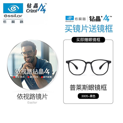 链接多款镜框镜片可选款钻晶膜岩是A3的升级款,耐磨耐划提升2倍经久耐用,折射率1.60,双面防紫外线、抗尘、防水、耐磨损、耐污、减少反光,适合没有防蓝光需求的人士日常、出游、读书、观影时佩戴,镜片通透不偏色,清晰度高,有着非常不错的口碑。