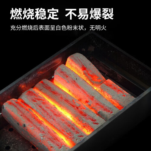 利用竹粉压制而成,易燃烧,烧烤,取暖更放心。采用全新制炭工艺,结构紧实、密度大、强度高,持续燃烧时间长达6小时,1根更比2根强。完全燃烧表面温度高达700度,烧烤更轻松,串更香。燃烧过程温度均匀稳定,不飘灰、无爆裂现象,充分燃烧后表面呈白色粉末状,无明火,滴油不会爆燃。