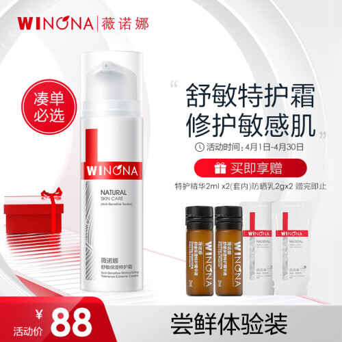 WINONA是来自云南昆明贝泰妮生物科技有限公司旗下的护肤品品牌,创立于2005年6月。这款特护霜是薇诺娜家的拳头产品,含有牛油果树果脂、青刺果油、透明质酸钠、马齿苋提取物、β-葡聚糖等成分,有别名“小药精”,无香精无色素无酒精无防腐剂,专为高敏感肌肤设计,维稳舒缓。质地丰润,介于乳液和膏霜之间,保湿滋润度不俗,且不油腻。