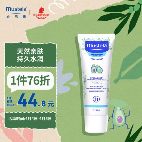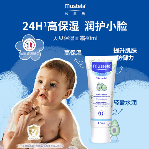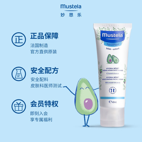 mustela 妙思乐 婴儿面霜,优选天然安心呵护,良好亲肤性、渗透力和修护力,守护幼嫩肌肤。甜扁桃油霍+霍巴籽油牛+油果树果脂,富含丰富维生素,滋养软化皮肤,柔软肌肤、舒缓保湿,舒缓、软化、滋润皮肤,收缩粗大的毛孔,质地温和细腻,融入肌肤,即显水润柔嫩。突破性科研配方,过专利提取工艺,萃取出鳄梨果活源醣,区别于普通植物配方,它是新一代活性成分,能亲和婴儿皮肤,功效出色并安心舒适,蕴藏宝宝皮肤的能量源,让宝宝皮肤更细腻、光滑,奠定皮肤好基础,巩固皮肤屏障结构,提升皮肤防御功能。