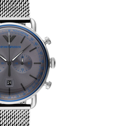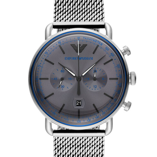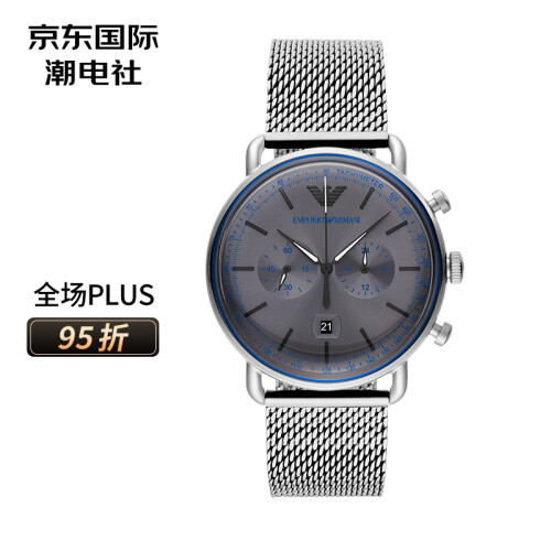 EMPORIO ARMANI 阿玛尼 男士石英表 AR11383,此款暗灰色表盘干净素雅,多维度计时满足日常生活需求,黑白相间指针夺目闪耀,质感三表冠方便调节,时尚大气镌刻鹰标logo,彰显品牌质感,银色钢制表带极具时尚感,纹理编织佩戴舒适,完美贴合手腕。