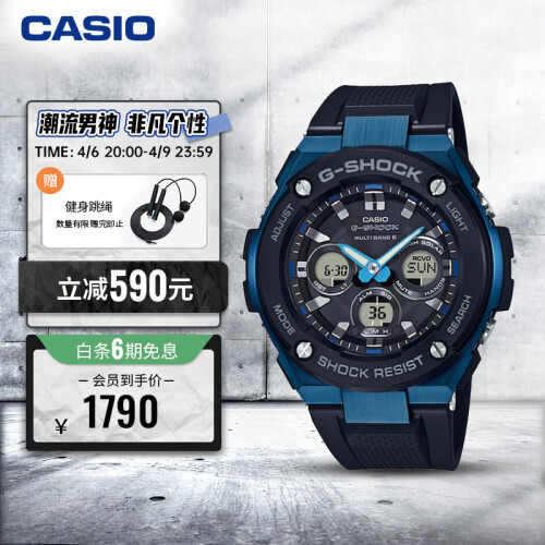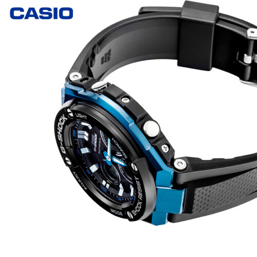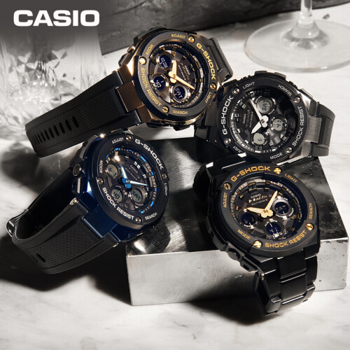 CASIO/卡西欧 GST-W300G-1A4PR 男士太阳能手表,卡西欧推出的这款G-STEEL M系列男士腕表,选用黑色三眼圆形表盘,数字时间显示搭载黑色指针,简洁明了,方便你查看时间。黑色橡胶表带搭配打孔扣,佩戴舒适且方便脱戴。具有光动能,不用担心电池耗电问题。人工蓝宝石水晶玻璃表镜设计,防刮耐磨。具有生活防水功能,满足您的日常佩戴需求。