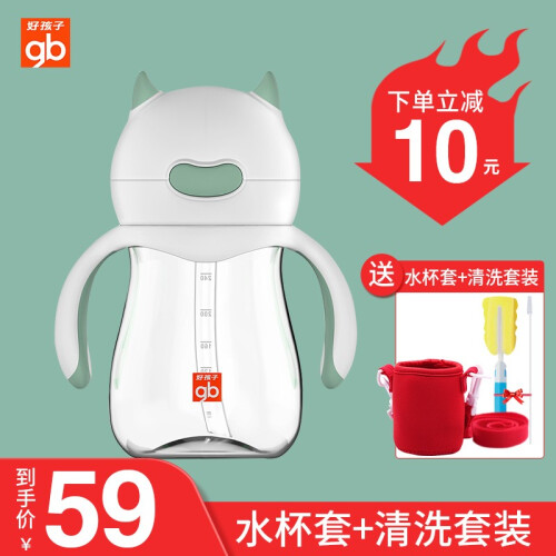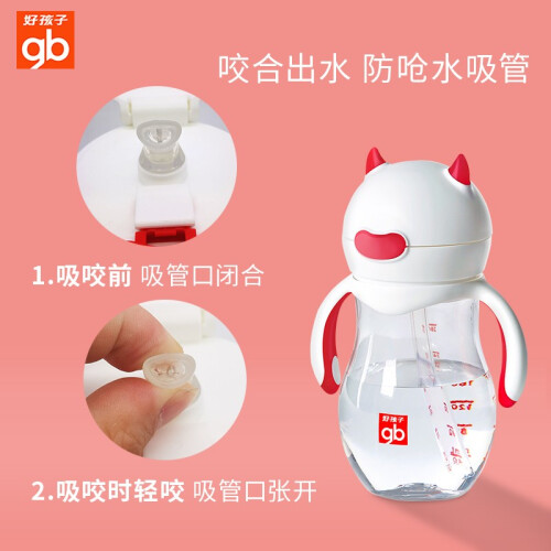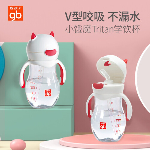 gb 好孩子 小饿魔系列 TRITAN 吸管训练杯 240ml 可爱造型,进口材质,5级抗摔,防漏,食品级硅胶吸管,三年不用更换,防胀气,弹跳按钮,硅胶弹簧,防滑把手,宽杯口设计,可拆卸杯盖,杯盖上柔软的触角可磨牙期宝宝带来更多探索体验。
