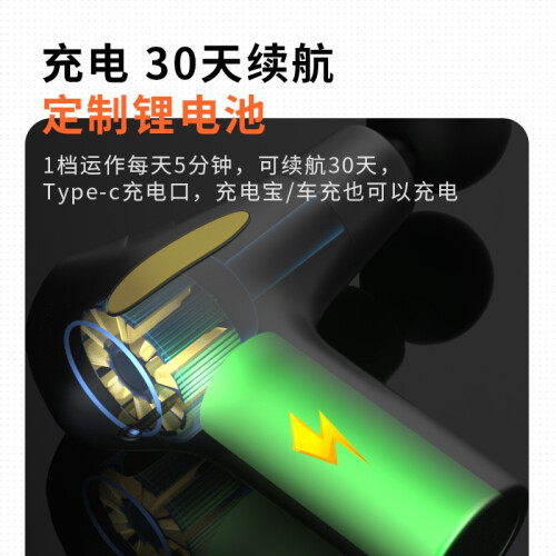 采用微型大功率电机,搭载航空电机技术,实现3200转/分钟的强悍动力;瞬间输出高达10KGf的深度冲击,点压式按摩,有效缓解肌肉酸痛。支持6档力度调节,满足不同部位的按摩需求。内置1800mAh锂电池,续航持久,能满足一天按摩所需。