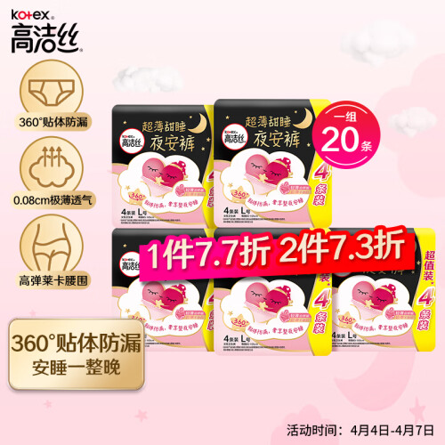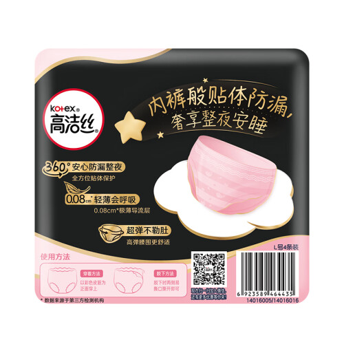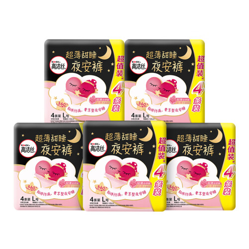 高洁丝是金佰利Kimberly Clark 集团旗下的女性卫生护理品牌,产品包括卫生巾、护垫、夜安裤等女性护理产品。这款夜安裤采用柔软面层,超薄巾身,贴身裁剪,拒绝侧漏。可单独穿,秒速穿脱,懒惰女孩福音~尺寸是L码,适合腰围60cm-100cm的女性。