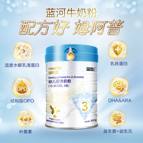 蓝河(BLUE RIVER)于2003年在新西兰成立。其推出的这款配方奶粉,采用适度水解工艺将牛奶蛋白水解为小分子蛋白,降低致敏性。富含OPO结构脂、益生菌Bb-12和益生元组合、DHA和ARA、叶黄素等多种营养成分,可满足孩子生长所需营养。