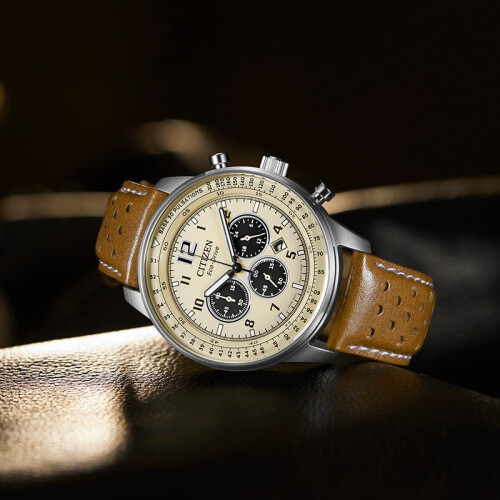 CITIZEN 西铁城 Future Force系列腕表,象征着对未来勇敢出击的刚性精神,以非凡魄力创造无限可能。表盘均融入飞行员腕表的设计风格,兼备使用日期显示功能,时标采用强烈的反差色,增强复杂表盘可读性的同时更显时尚美观。圆形表盘可显示日期,同时可兼作计时器,实用性强。光动能机芯,微弱光源即可为腕表提供运转所需动力,具有10BAR防水性能,满足日常防水需求。