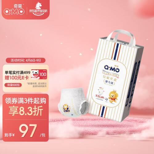 Q MO 奇莫 皇家至柔 婴儿拉拉裤 ,高腰围、全包臀设计,穿着更舒适合身,超吸水芯体,薄若无痕,负担甩光,瞬间干爽,均匀分布尿液,人体工学立体剪裁,温柔包裹无束缚,让宝宝自由自在玩耍。