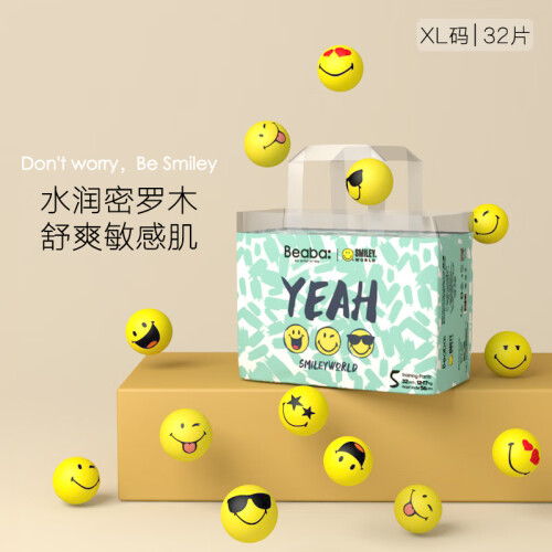 BEABA Smiley笑脸联名IP款 婴儿拉拉裤,一款时尚,用微笑诠释爱的拉拉裤。水润密罗木裤,滋润舒缓肌肤,有在线芯体技术,一体化芯体制作工序,环保防尘,海量瞬吸,轻薄无负担,上亿颗魔力水珠,全方位锁水,不起坨,不反渗,让小PP整日干爽。细旦纤维,柔软轻盈,舒适自然,轻柔呵护宝宝肌肤。全透气设计,让肌肤自由呼吸。