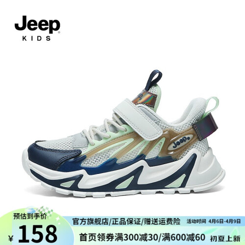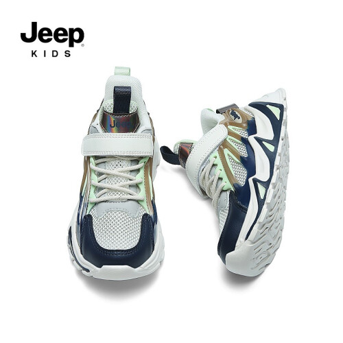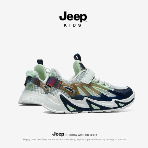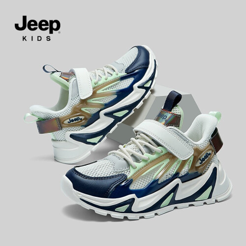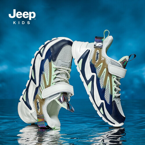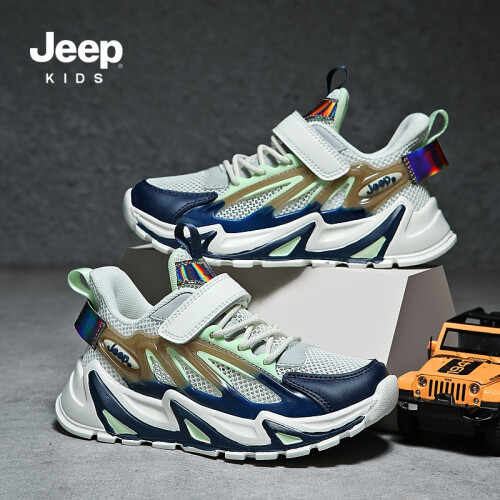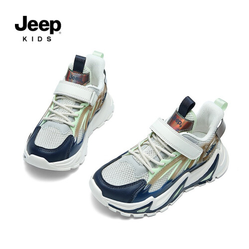 Jeep 吉普 男童网面跑鞋,时尚百搭,轻松驾驭多种风格,柔软亲肤透气,舒适不捂脚,贴合足部助力行走。便捷魔术贴设计,便捷舒适,提升孩子的独立性与自理能力。