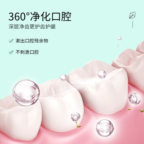 360净化口腔,深层净齿更护齿护龈,漱出口腔残余物,不刺激口腔。