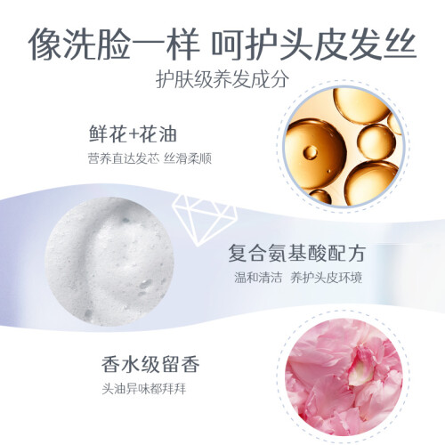 此款樱花精油修护洗发水,添加鲜花精油成分,呵护发芯,改善干枯暗哑发质,令秀发丝滑柔顺。氨基酸配方,泡沫丰富细腻,温和清洁头皮。微囊包裹花香技术,360°包裹香氛,香气持久。