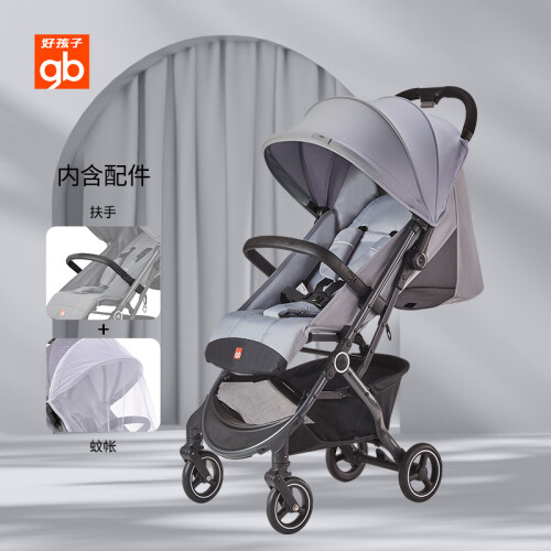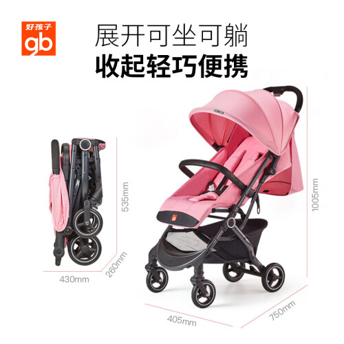 Goodbaby好孩子是国内最知名的母婴品牌,产品大量出口欧美发达国家。这款童车脚踏和靠背和舒适调节,一按一扣,快速折叠。小巧轻便,可带上飞机,整车净重5.9kg。一体成型技术,双圆弧形造型,弹力面料遮阳篷,透气网眼设计。