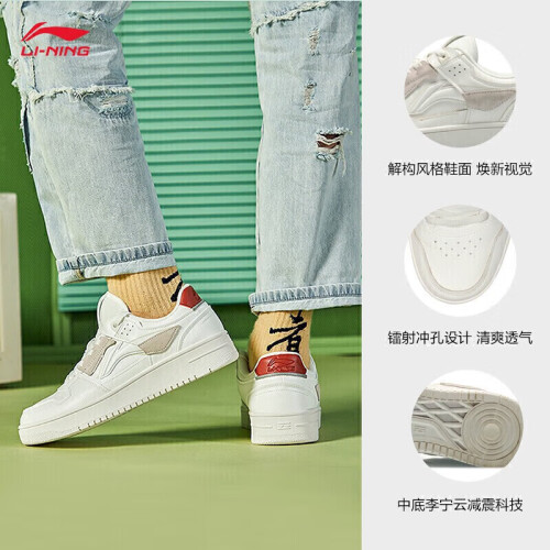 LI-NING 李宁 AGCP299 男款运动板鞋 ,经典休闲鞋设计语言,融合时尚解构风格,塑就出挑视觉维度,百搭多样格调。局部镭射冲孔细节,提升鞋身透气性,让双足流畅呼吸,为舒适加码。