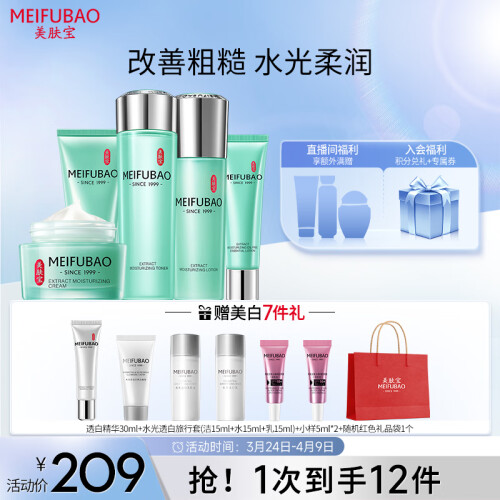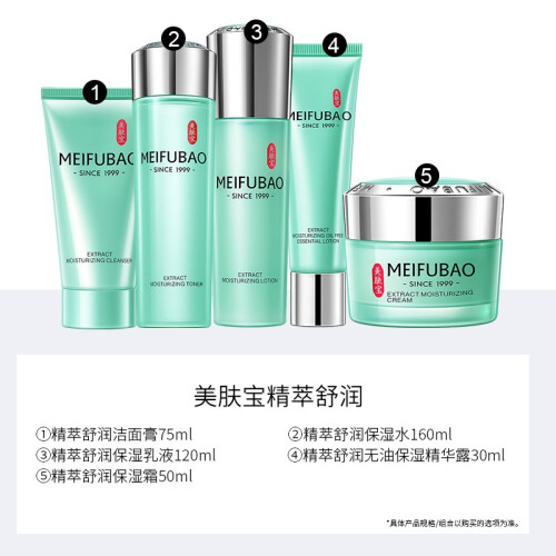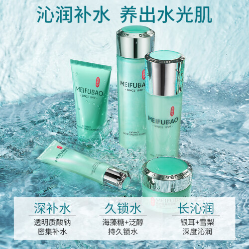 美肤宝(MEIFUBAO)推出的这款护肤套装,添加玻尿酸、海藻糖、维生素原B5、苹果酸和库拉索芦荟等成分,可深入肌底补充水分,提高肌肤锁水保湿力,同时维持肌肤水油平衡,舒缓和呵护肌肤。套装中含有洁面膏、保湿水、保湿乳、精华露等产品,可根据个人需求选择不同组合套装使用。