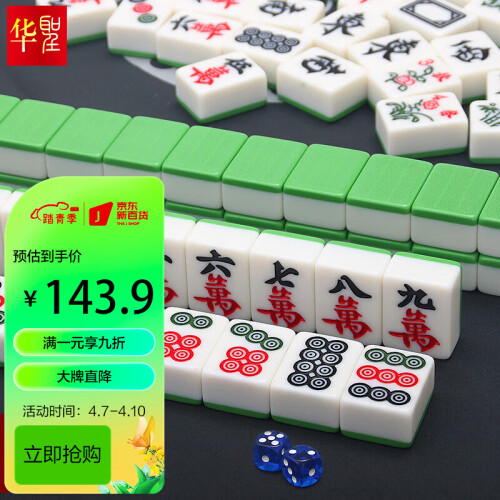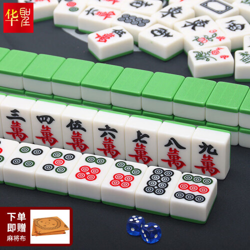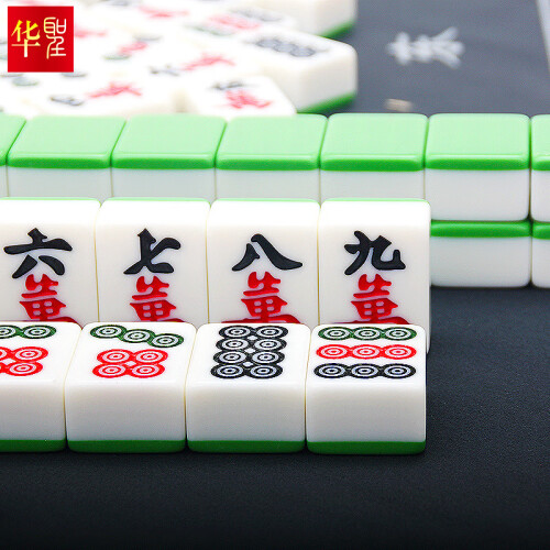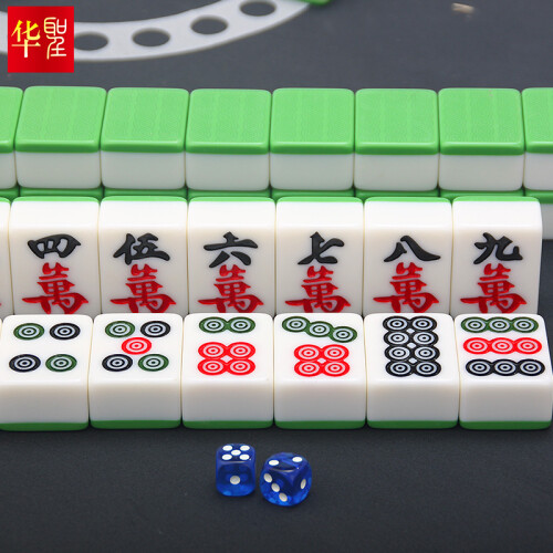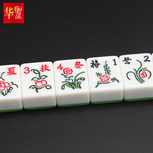华圣 H-001 42mm一级麻将牌 大号144张,此麻将为手打麻将,无磁性,非机打麻将。42号是棋牌室最常见的型号,采用实心麻将牌,手感厚重,家用可手搓。深度雕刻麻将牌面印痕,在手搓摸牌辨识时更精确,摸牌更具有魅力。具有耐磕碰、耐腐蚀、耐高温、耐低温等优点,结构紧密,有较强的硬度,不易摔破,有很强的耐用性。容易着色,且颜色非常漂亮。全套144张牌,144张包含:条、筒、万、东南西北、红中、发财、白皮,春夏秋冬等八只花。可以当做136张使用,108张使用, 把多余的牌拿掉即可,全国通用。