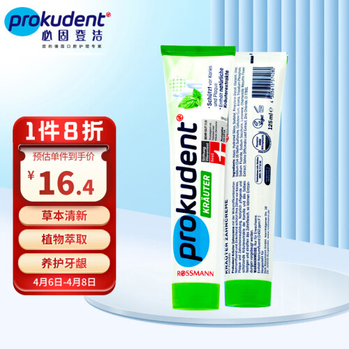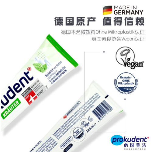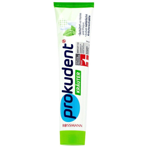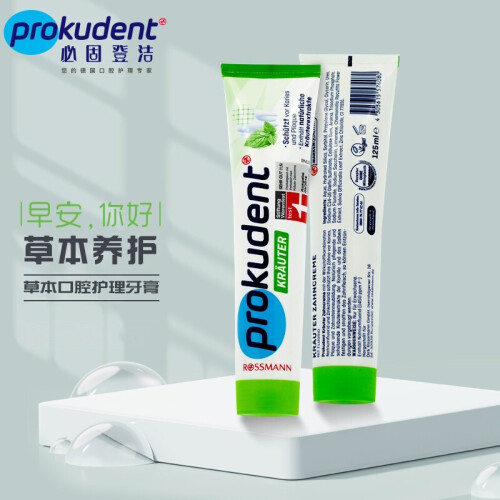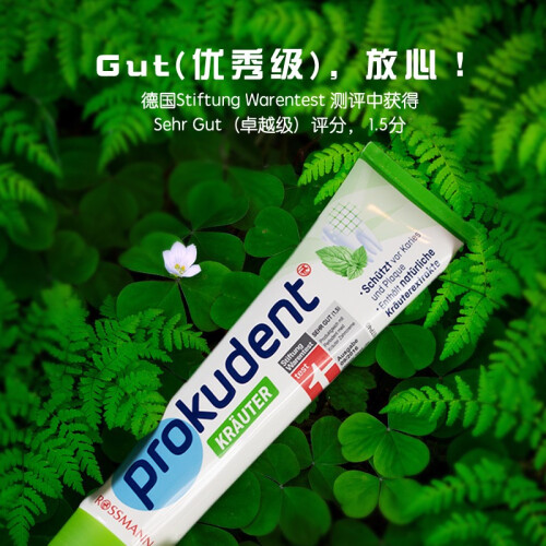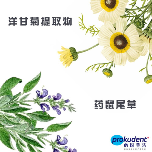 prokudent草本口腔护理牙膏的氟化钠和尿素配方能够有效保护牙齿,防止蛀牙。 氯化锌可以有效防止牙菌斑和牙垢的形成,并抑制口臭。由洋甘菊提取物和药鼠尾草提取物组成的天然草药提取物结合可以持续地护理牙龈。